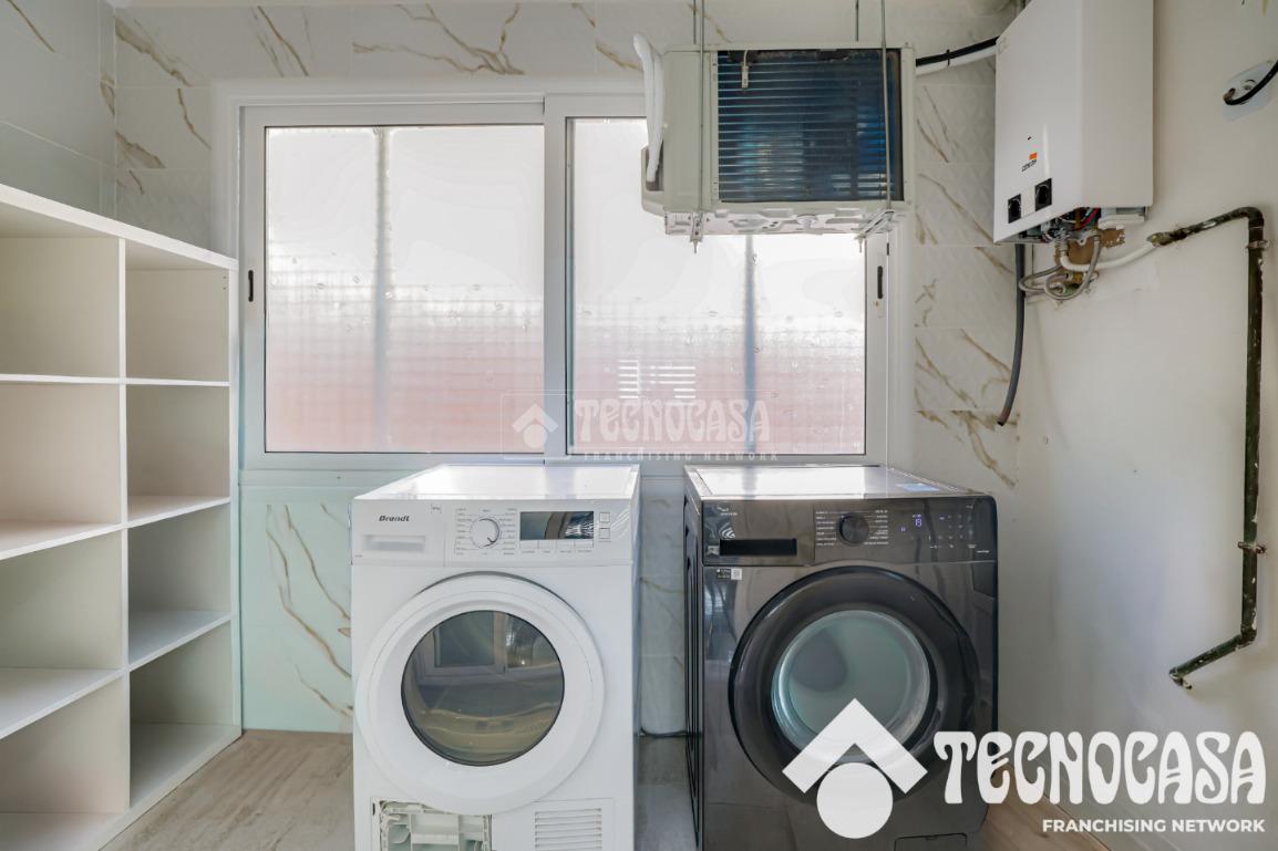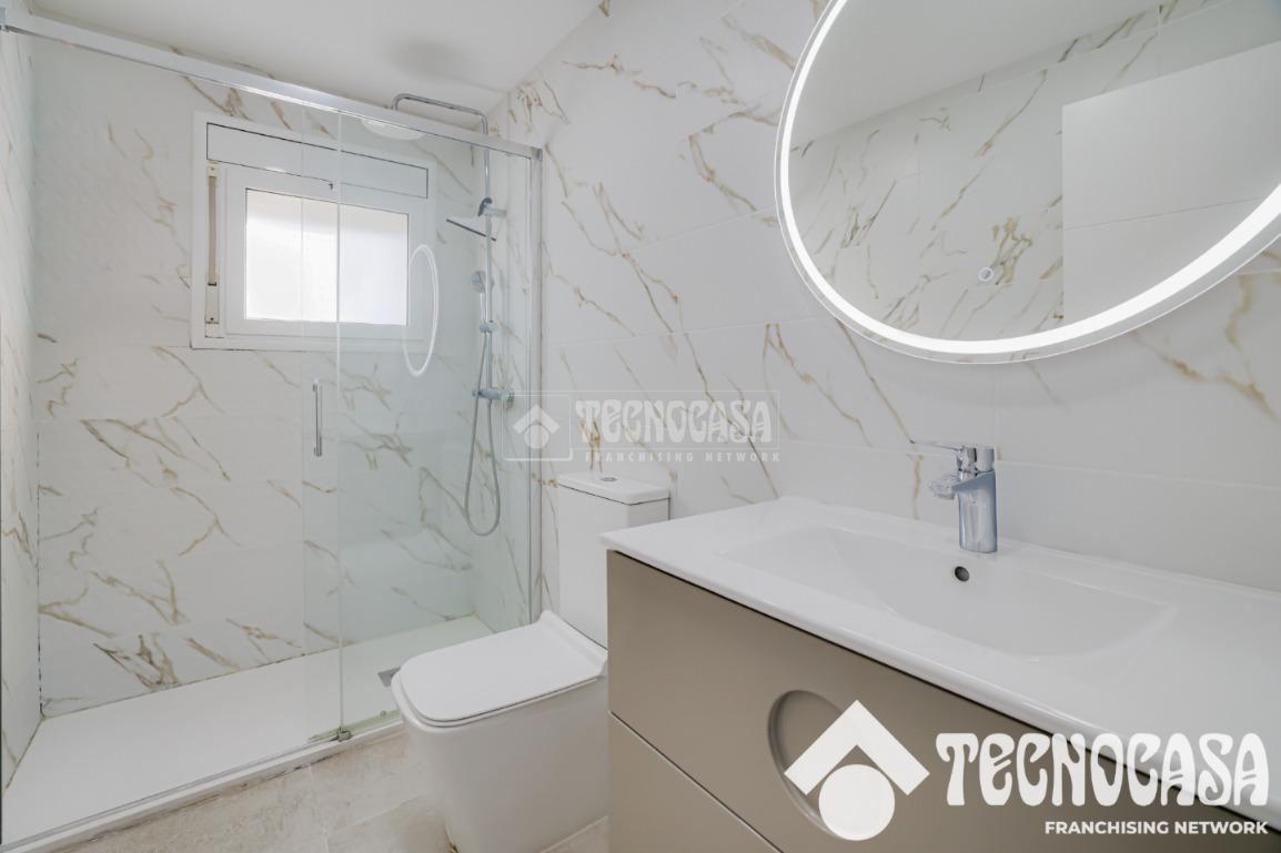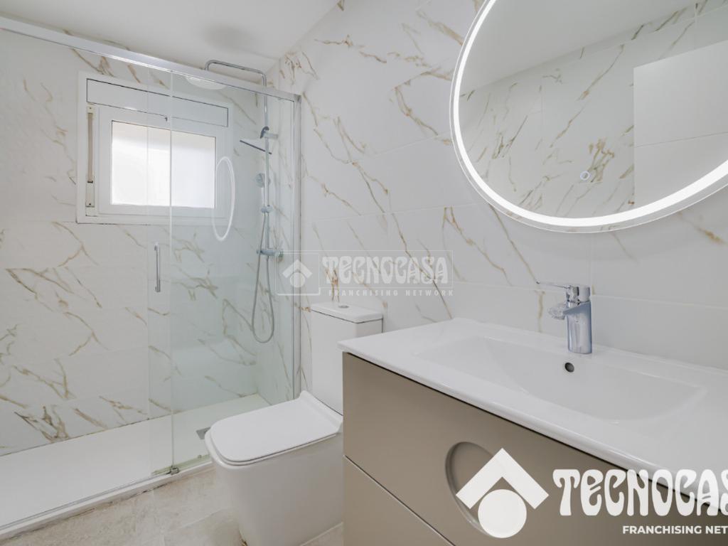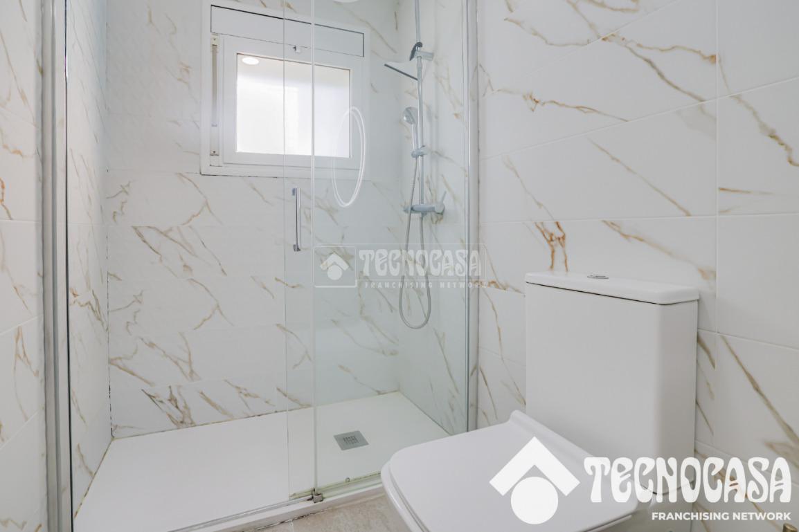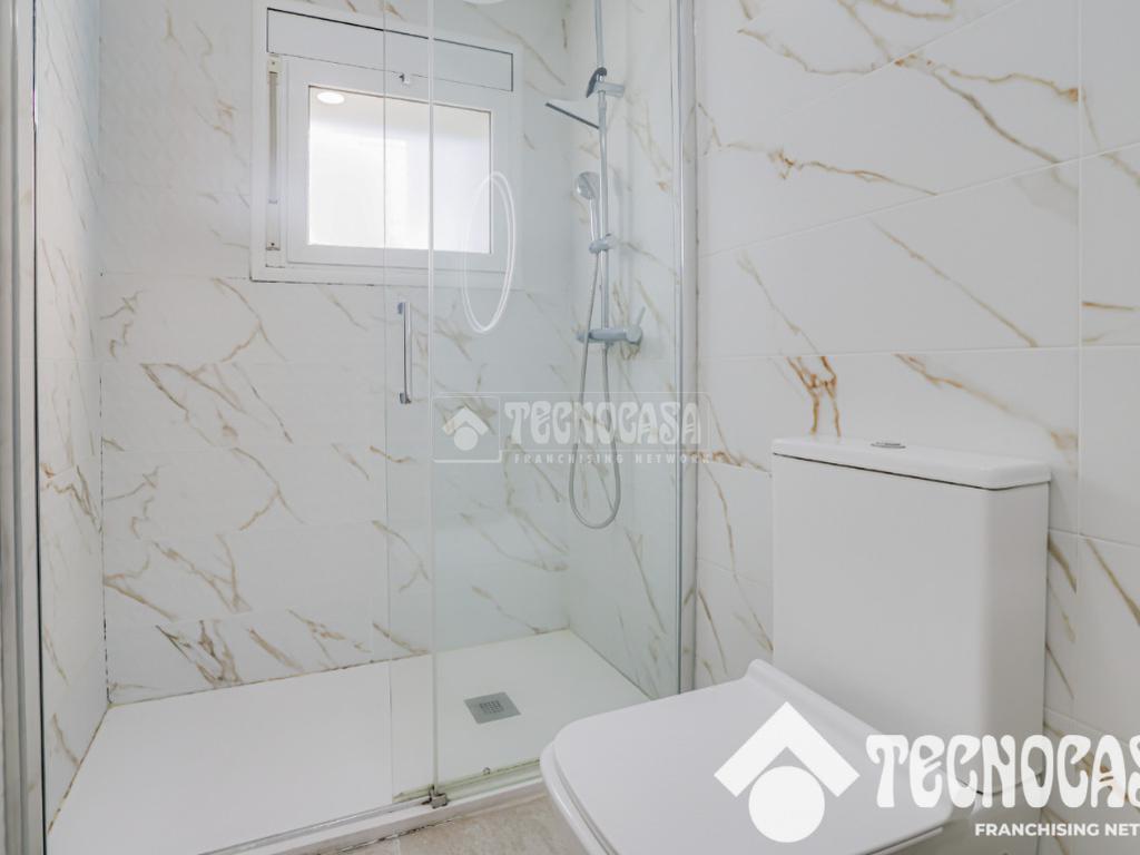 El baño cuenta con un moderno plato de ducha y una ventana al exterior que proporciona una excelente ventilación. Además, el balcón cerrado se adapta perfectamente como lavadero o espacio de almacenaje.